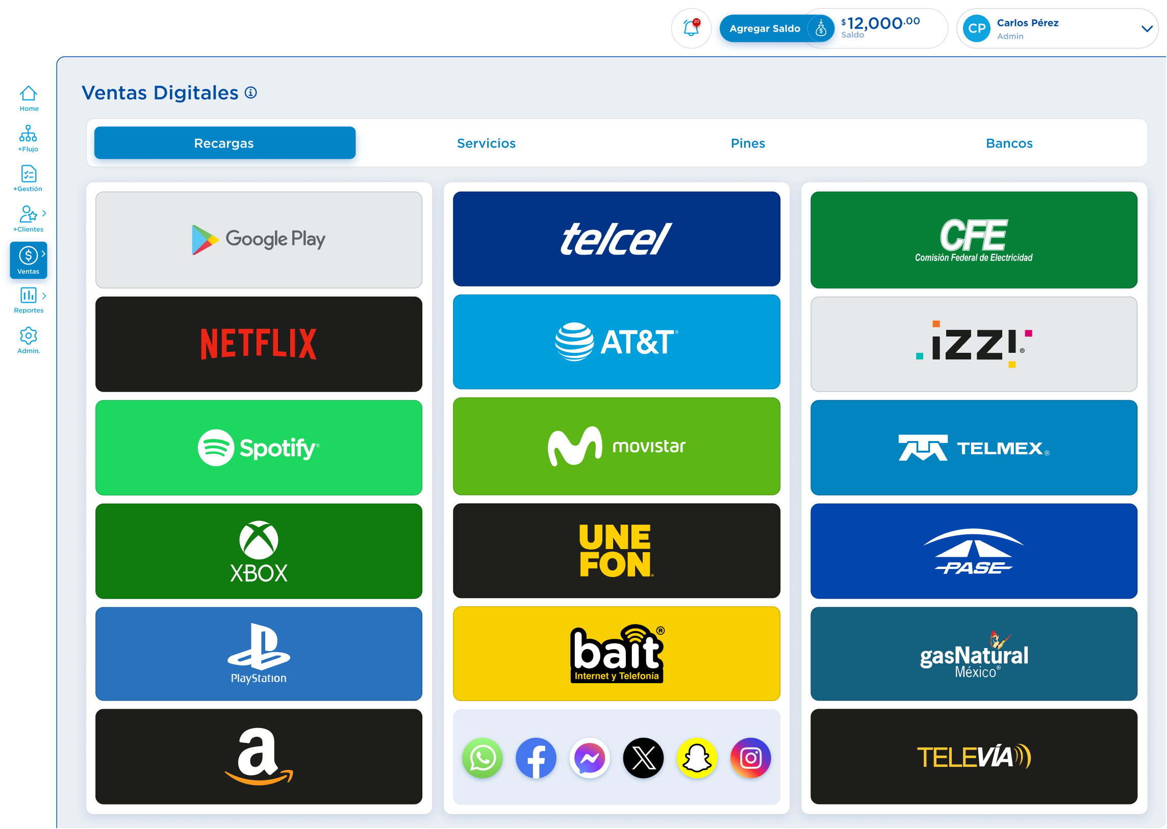 - La comisión por venta de Tiempo Aire, Pagos de Servicio y pines se abona directamente a tu saldo reflejado en tu Plataforma todos los lunes. Mientras más vendes, más comisiones se te depositan para la venta de Productos Digitales.